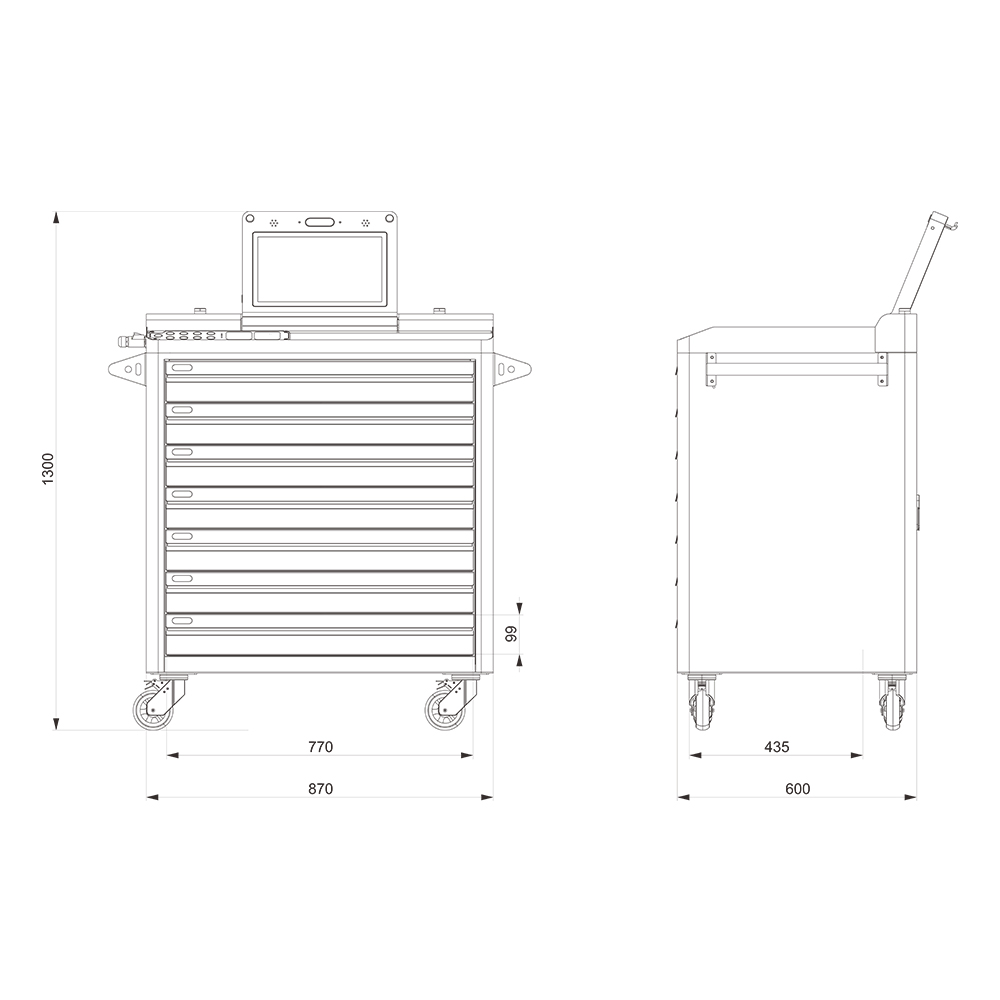The CK-GTC7A RFID Real-Time Tool Tracking Cart delivers mission-critical tool control for aviation hangars and power plants. Featuring ISO 18000-6C UHF RFID with dual-antenna technology, it achieves 99.9% read accuracy in dense tool configurations. The IP54-rated 14″ HD touchscreen and 1.2mm carbon steel build withstand harsh environments, while real-time missing tool alerts integrated with SAP/Oracle reduce FOD risks by 90%.